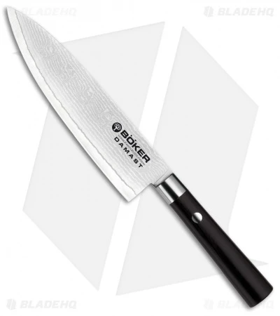 Boker Damascus Black 6.25″ Small Chef’s Kitchen Knife Pakka Wood