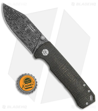 - Black burlap micarta front scale.